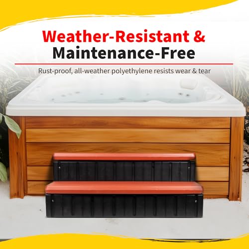 - كبيرة ومستقرة وتحمل الوزن - يبلغ مقاسها 36 انش عرضًا × 22.75 انش عمقًا × 14.5 انش ارتفاعًا، توفر درجات حوض الاستحمام الساخن هذه منصة واسعة ومستقرة وتتحمل ما يصل إلى 300 باوند، مما يوفر حلاً آمنًا ومتينًا لمعظم المنتجعات الصحية وأحواض الاستحمام الساخنة في الهواء الطلق.