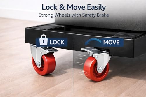 - عجلات قوية بفرامل أمان تسهّل تحريك مبرد المياه بسهولة، مع إمكانية تثبيته بأمان تام عند التوقف.