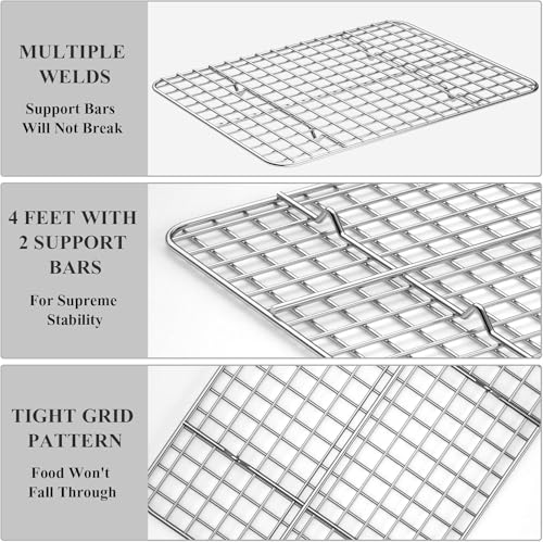 - 【ستانلس ستيل ممتاز آمن غذائيًا】مصنوع من الستانلس ستيل 304 عالي الجودة، يضمن رف التبريد هذا متانة لا مثيل لها ومقاومة للحرارة وأداء مقاوم للصدأ. على عكس البدائل الرديئة، فإنها تبقى متينة وخالية من البقع بعد استخدامات لا حصر لها. مثالية للخبز أو التحميص اليومي، فهي تحافظ على لمعان رائع وسطح آمن وخالي من السموم للتلامس المباشر مع الطعام في كل مرة