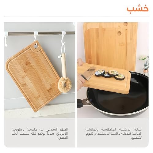- [هيكل شديد التحمل]: لوح تقطيع سميك وكبير من الخيزران، مصمم للاستخدام المتكرر والمكثف دون اهتزاز أو انزلاق.
