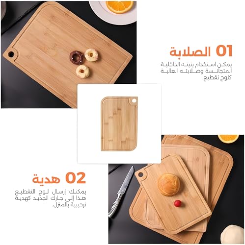 Generic - لوح تقطيع من خشب البامبو شديد التحمل مع فتحة لتجميع السوائل لوح تقطيع سميك ومتين للمطبخ وصينية لتقديم الطعام متعدد الأغراض للحوم والجبن والخضروات (33×23 سم)