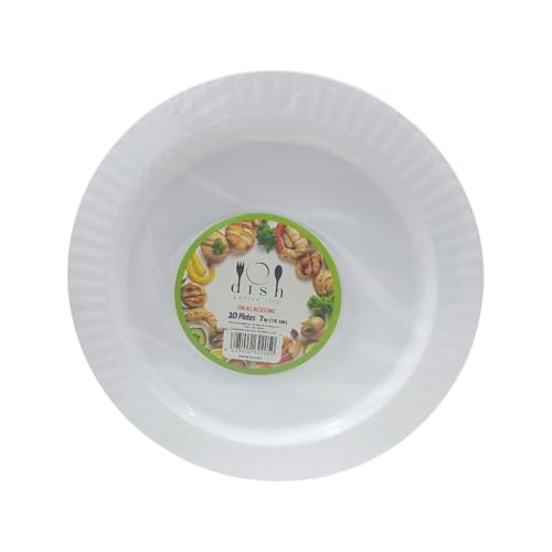 Generic - أطباق عشاء بلاستيك متينة للاستعمال مرة واحدة بتصميمات أنيقة للحفلات وحفلات الزفاف وتقديم الطعام - متوفرة في عبوات من 10 أو 20 قطعة، لون أسود أو أبيض، مقاس (18 سم) (10 قطع، لون أبيض)