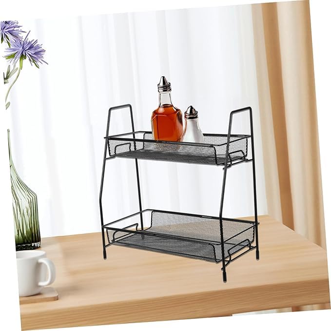 - رف طاولة حديد - تصميم كلاسيكي من طابقين، يمكنه حمل العديد من الأدوات المنزلية والحفاظ على طاولتك مرتبة ونظيفة، رف المطبخ عملي.