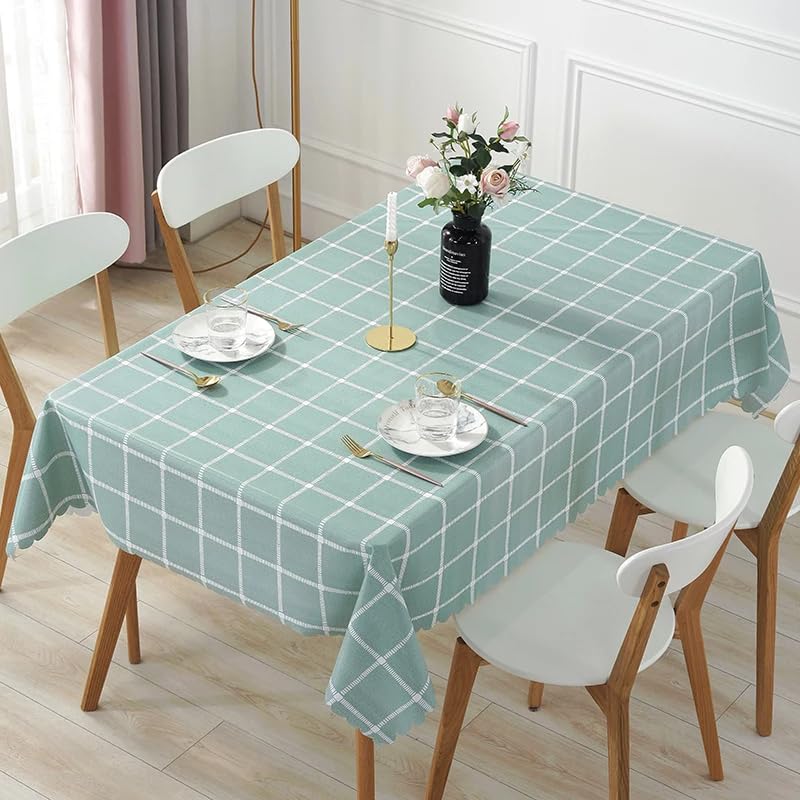 Spaceshoop - غطاء للسفرة و المطبخ عالي التحمل ومقاوم للماء والزيت والبقع مفرش طاولة بنمط هندسى مربعات غير قابل للانزلاق لطاولة الطعام والمطبخ وطاولة القهوة والمكتب اخضر 180×140 CM أكريليك مقاس واحد