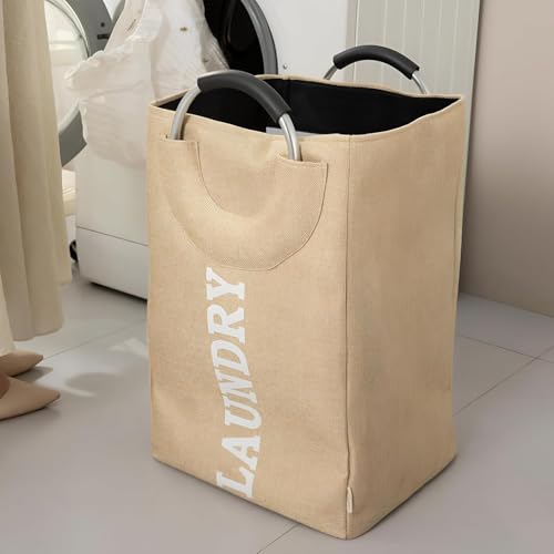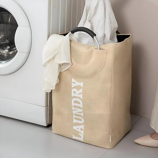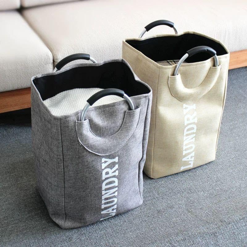 Generic - سلة غسيل شديدة التحمل بمقابض معدنية - تخزين متعدد الاستخدامات، مبطنة بالقطن، قابلة للطي، مثالية للملابس والجوارب وغيرها (قطعتين)