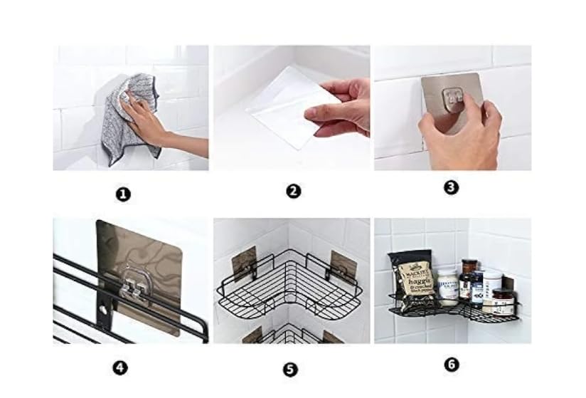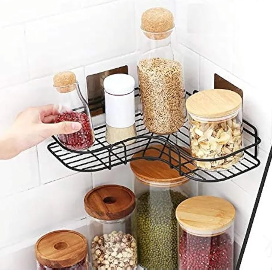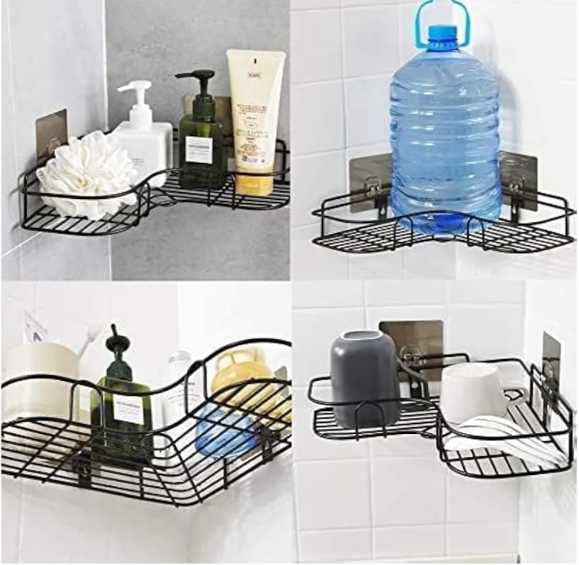 Generic - رف تخزين معدني شديد التحمل، عبوة من قطعتين، ذاتي اللصق، مقاوم للصدأ، أسود، للحمام والمطبخ