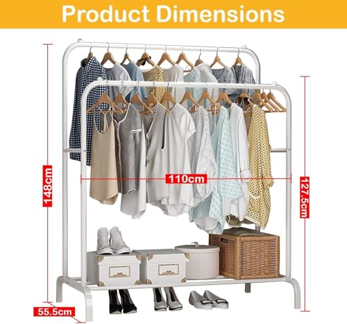 - 【مساحة تخزين كبيرة】: تصميم القضبان المزدوجة يمكنه استيعاب ضعف عدد الملابس لتلبية احتياجاتك الحياتية. يمكن للرف السفلي أن يستوعب أيضًا عدة أزواج من الأحذية.
