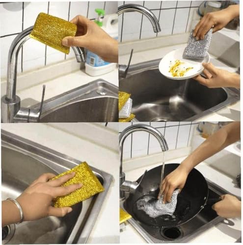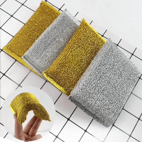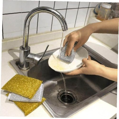 - تصميم مزدوج الجوانب: وسادات تنظيف معدنية ذهبية وفضية مثالية للتعامل مع فوضى المطبخ الصعبة مع كونها لطيفة على الأسطح