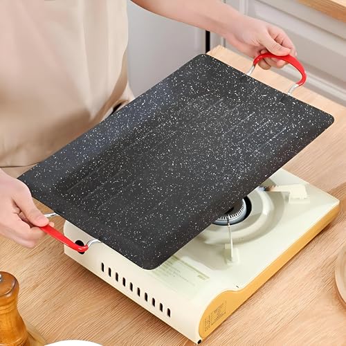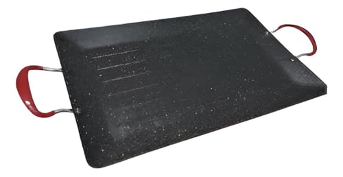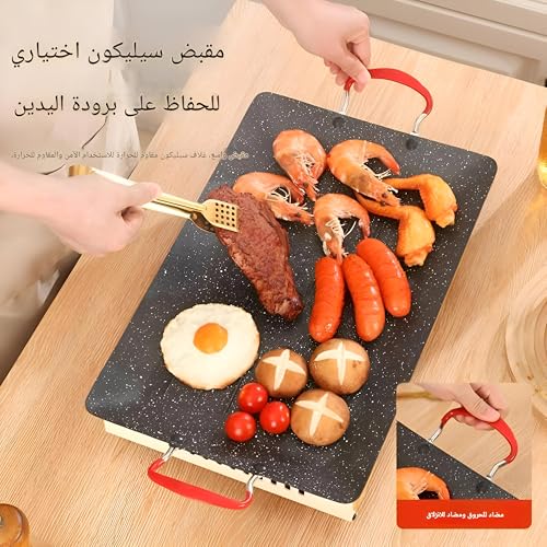 Generic - مقلاة شواء شديدة التحمل غير لاصقة - مطلية بالجرانيت، مقابض سيليكون، 50 × 35 سم، لمسة نهائية سوداء، مصممة لسهولة الطبخ والتنظيف