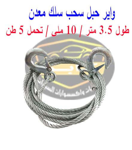 Generic - حبال سحب شديدة التحمل، كيبل سلكي عالي القوة مع خطاف ستيل لمقطورة الطوارئ او سحب المركبات (10 مل، 3.5 متر، حمولة 5 طن) - من كابر تريد