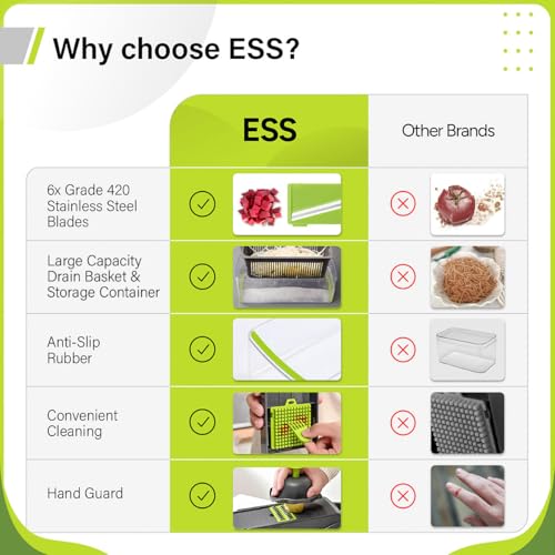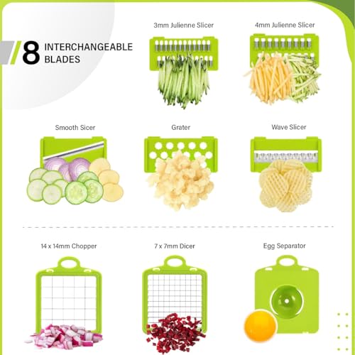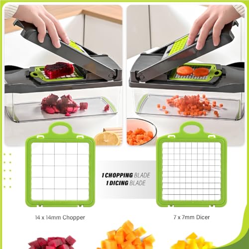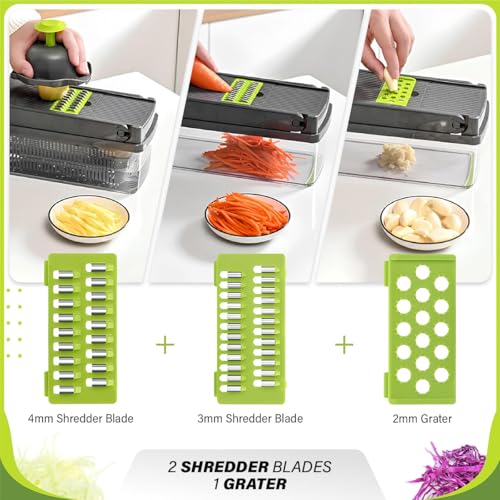 KitchenCraze - قطاعة خضروات شديدة التحمل | 14 في 1 | شفرات حادة للغاية وصلابة للغاية ولا تصدأ | مصنوعة من مواد عسكرية وخالية من المواد الكيميائية وغير سامة
