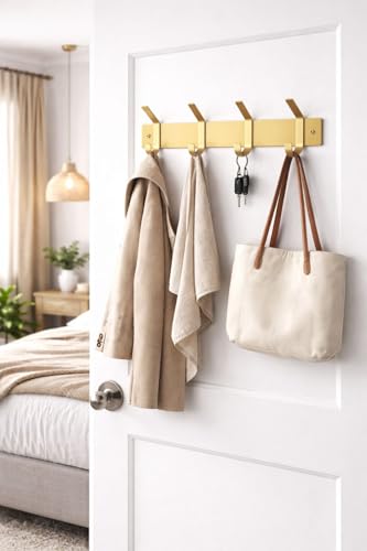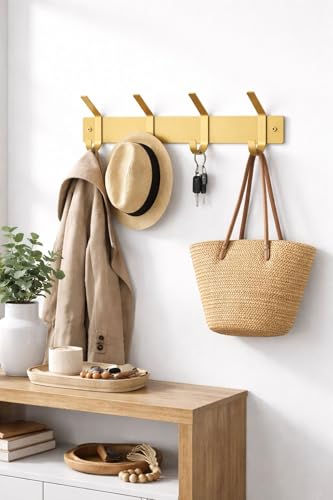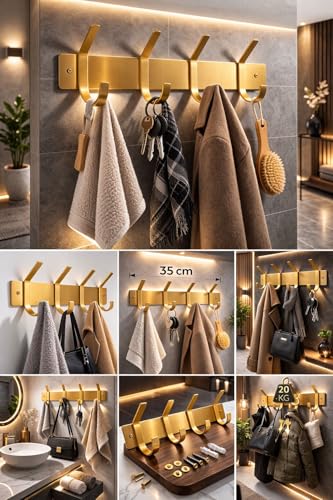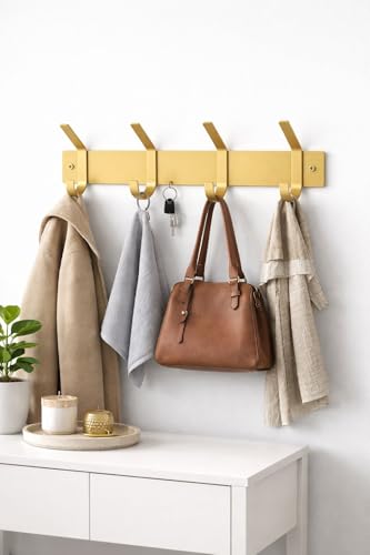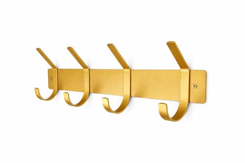 Generic - رف خطاف حائط شديد التحمل 35 سم - 4 خطافات - شماعة معطف معدنية قوية - تحمل حتى 20 كجم - لمسة نهائية ذهبية