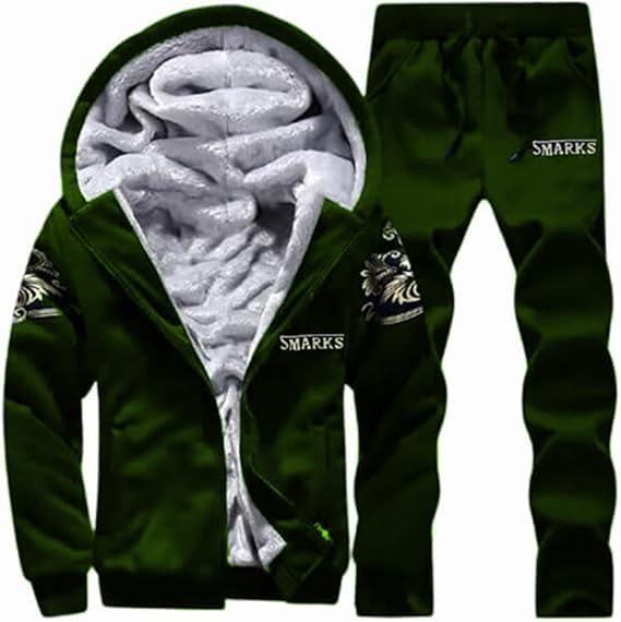 Generic - طقم رجالي ثقيل للشتاء مبطن بفرو من الداخل ومزين بتطريز غير مطبوع