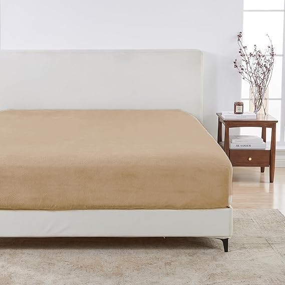 CUBD - دفاية سرير قطيفة ثقيلة بحواف مطاطية لضمان الثبات والدفء الكامل (بيج, 120*200*30 cm)