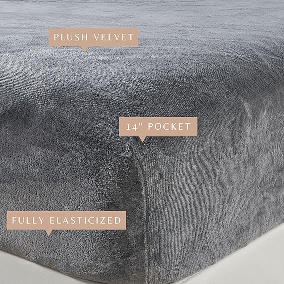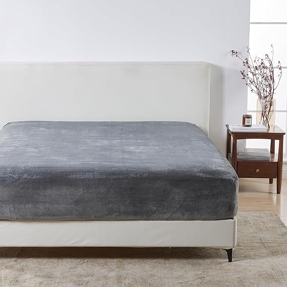 CUBD - دفاية سرير قطيفة ثقيلة بحواف مطاطية لضمان الثبات والدفء الكامل (رصاصي, 180*200*30 cm)