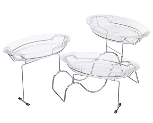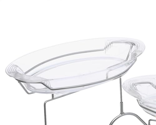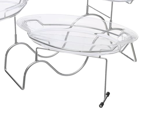 HEC - حامل حلويات كريستال اكريليك عالي الجودة ثلاث مستويات مع حامل مطلي بالكروم من اتش اي سي - فضي شفاف