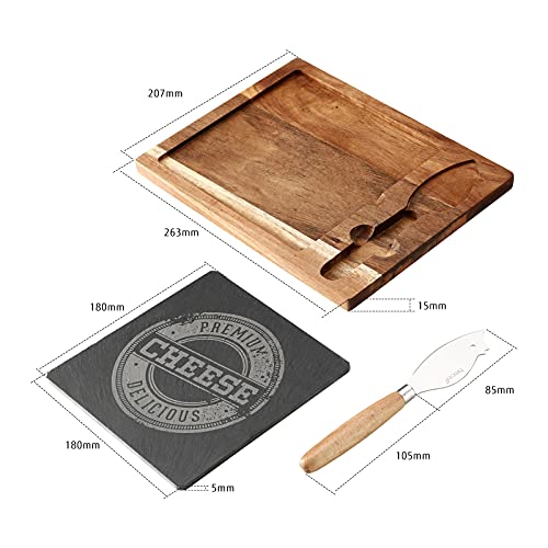 hecef - هيسايف مجموعة الواح جبن من خشب الاكاسيا مع سكين وسكين طبق تشاركوتيري خشبي وصينية تقديم لمقرمشات الجبن واللحوم هدية فاخرة للمنزل الجديد عيد ميلاد ثلاثي الشكل