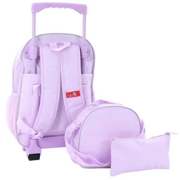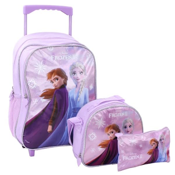 - تتضمن شنطة بعجلات بتصميم فروزن ولانش باج مطابقة ومقلمة.