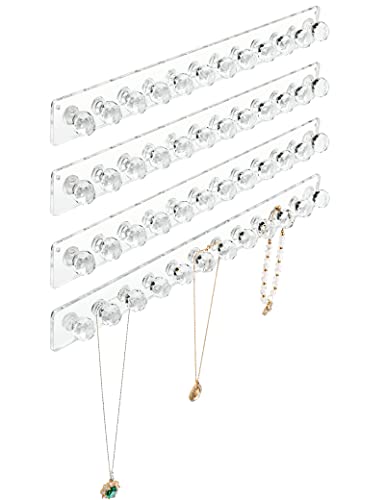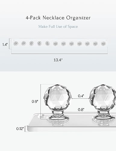Heesch - علاقة سلاسل ومنظم من الاكريليك يثبت على الحائط ومزود بخطافات للمجوهرات والسلاسل والأساور هيش - 4 قطع شفافة