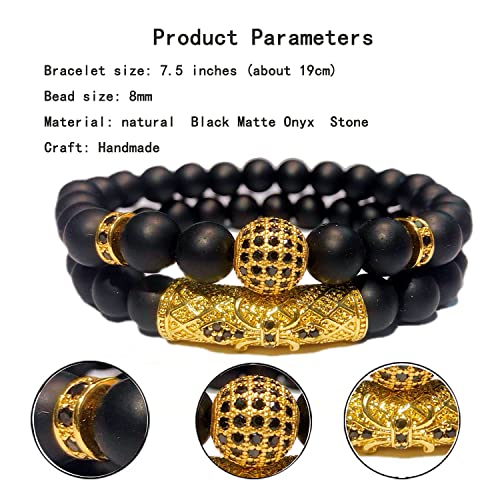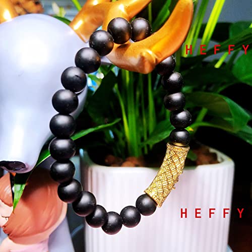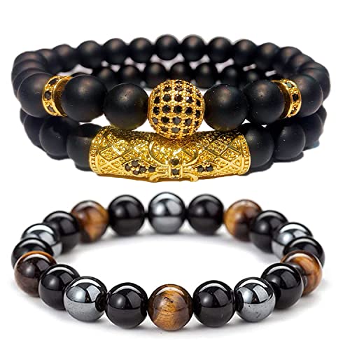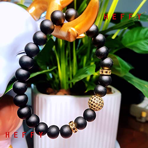 HEFFY - هيفي سوار عين النمر 8 ملم من 3 قطع خرز حجر اونيكس اسود غير لامع مرن الاحجار الطبيعية لليوغا مجموعة اساور للنساء والرجال انش زجاج بركاني