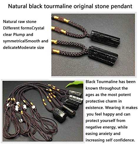 HEFFY - هيفي قلادة بدلاية من حجر التورمالين الكريستالي الخام الاسود + سوار حماية ثلاثي، اساور عين النمر من حجر الهيماتيت والزجاج البركاني للرجال والنساء، قطعتين