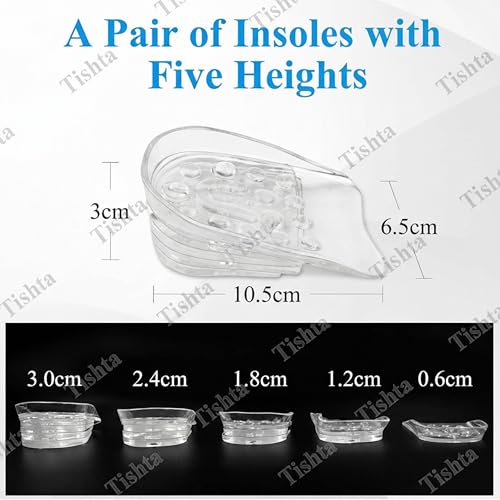 Generic - كعب سيليكون لزيادة الطول مخفي تماماً، نعل طبي شفاف لرفع القامة وحماية الكعب من الصدمات، فرش حذاء مريح وعملي لعلاج ألم القدمين وسهولة المشي لفترات طويلة