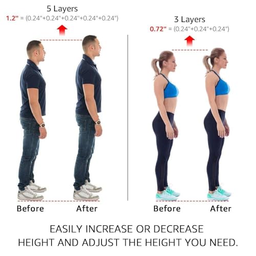 SWIUKPHE - نعل داخلي لزيادة الارتفاع، نعل داخلي جل قابل للتعديل من 5 طبقات لزيادة الارتفاع، حشوات كعب سيليكون للرجال والنساء، حشوات جل لرفع الكعب لتباين طول الساق، حشوات احذية غير مرئية