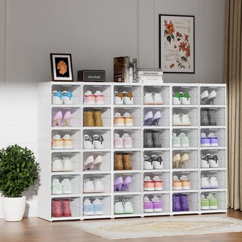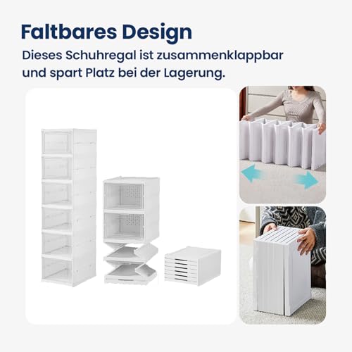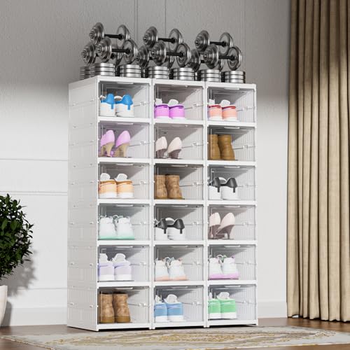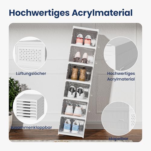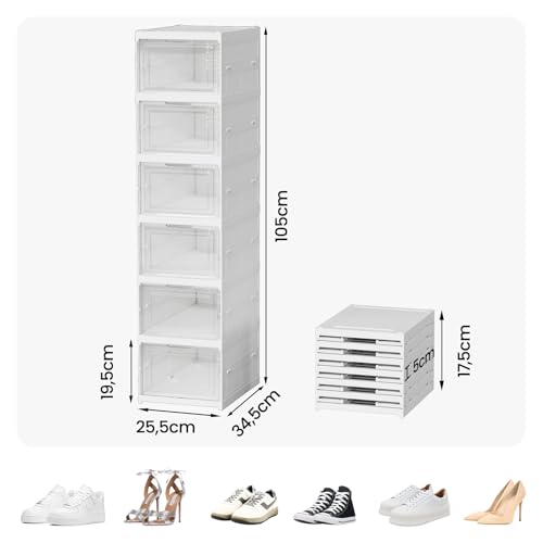 Heikoeco - صندوق منظم أحذية من هيكويكو® تخزين بشكل سلس قابل للتكديس شفاف 6 طبقات مع باب حاوية رياضية موفرة للمساحة حتى مقاس 46 بلاستيك