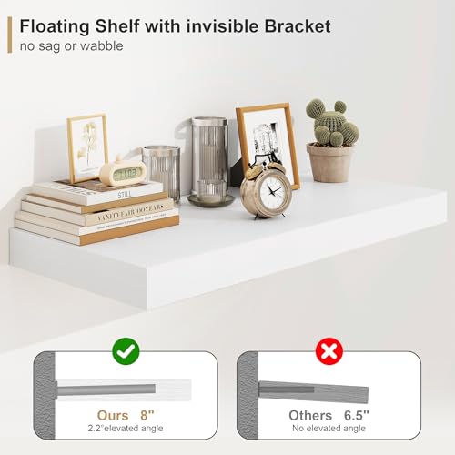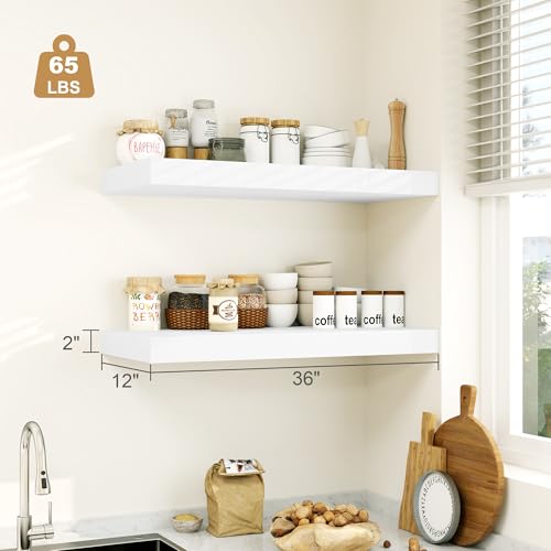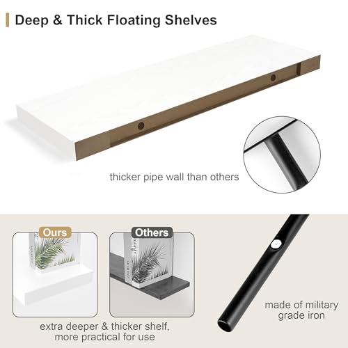 Heimlove - رفوف عائمة بيضاء عميقة 30.5 سم، تثبت على الحائط بتصميم ريفي طويل يثبت على الحائط 91 سم، رفف حائط مع دعامات غير مرئية لغرفة النوم والحمام وغرفة المعيشة والمطبخ، مجموعة من 1 قطعة من هايملوف