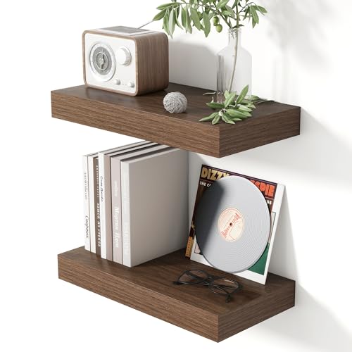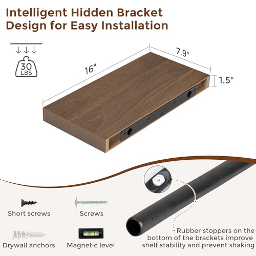 Heimlove - أرفف حائط علوية من الخشب الريفي بعمق 20.3 سم يتم تثبيتها علي الحائط بدعامات غير مرئية، مناسبة لغرفة النوم والمطبخ وغرفة المعيشة من هيملوف، لون أسود، مجموعة من 2 قطعة، 40.64 سم