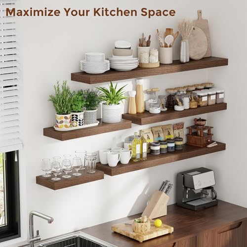 - 【دعم قوي】حقق أقصى استفادة من مساحة الحائط مع أرفف خشب الجوز مقاس 20.3 سم ×40.6 سم للجدار. بسمك 3.81 سم، توفر الأرفف دعماً قوياً للنباتات وقطع الديكور الخاصة بك. يمكن لكل رف حمل ما يصل إلى 13.6 كجم، مما يضمن ثبات أغراضك دون انحناء أو سقوط.