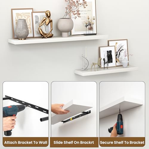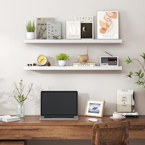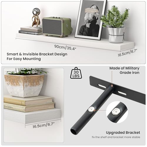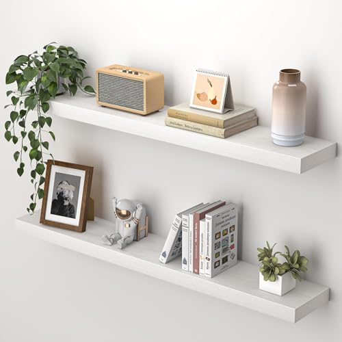 Heimlove - ارفف عائمة 36 انش من هيملوف، رفوف خشبية مثبتة للتخزين والعرض مع دعامات غير مرئية، رف معلق لغرفة النوم وغرفة المعيشة والمطبخ والمكتب، مجموعة من قطعتين، ابيض