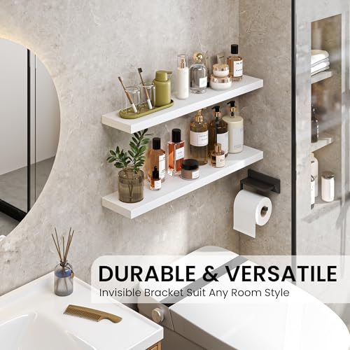 - 【تصميم عائم مع دعامات مخفية】مصنوعة من الخشب المتين المصمم هندسيًا، تتميز هذه الأرفف بنظام تثبيت سري يحافظ على الأجهزة بعيدًا تمامًا عن الأنظار للحصول على مظهر نظيف وانسيابي. يتحمل كل رف ما يصل إلى 30 باوند بسهولة، مما يجعله مثاليًا لعرض الكتب أو تنظيم أدوات النظافة أو عرض عناصر الديكور المفضلة لديك.