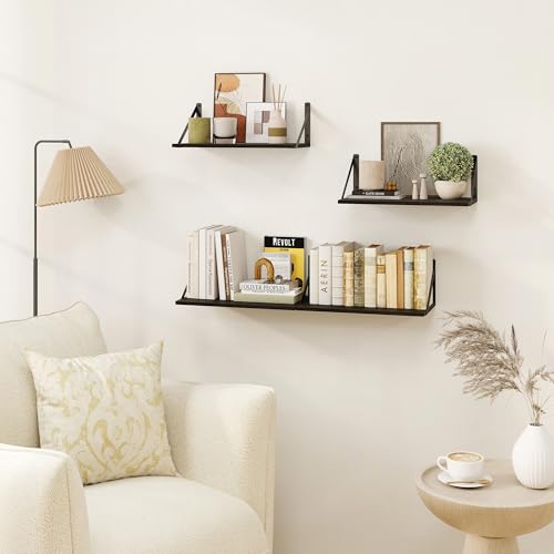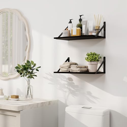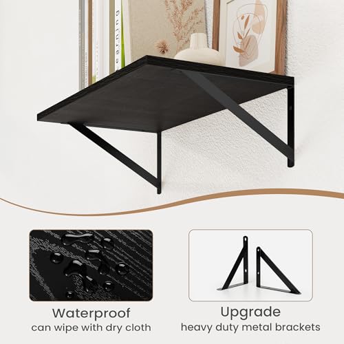Heimlove - أرفف عائمة عميقة سوداء للجدار، ارفف حائط خشبية 41 سم عرض × 20 سم عمق، رف كتب عائم عريض لغرفة المعيشة والمطبخ والمكتب وغرفة النوم وتخزين الديكور، مع دعامة معدنية - قطعتين بلون أسود من هيملوف