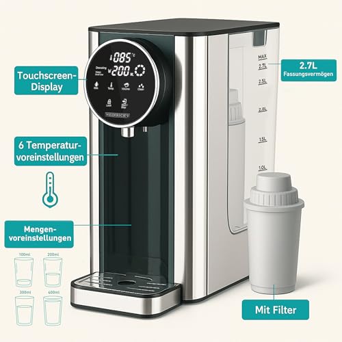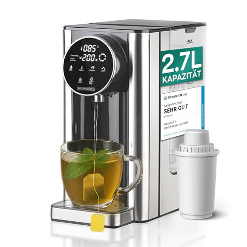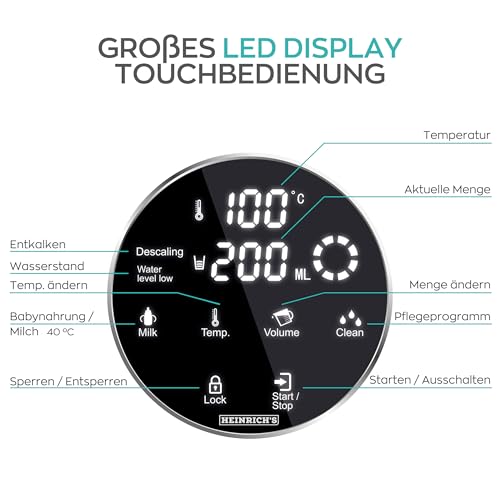 Heinrich´s - غلاية كهربائية من هاينريش´ز بلون ستانلس ستيل، مصنوعة من الستانلس ستيل، مع شاشة تعمل باللمس وتحكم رقمي، سعة 2.7 لتر