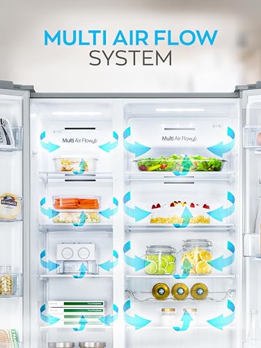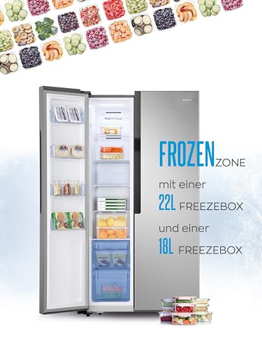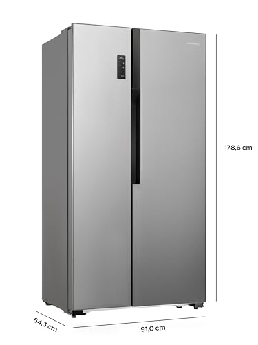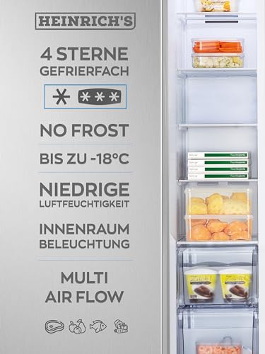 Heinrich´s - ثلاجة من هاينريش بتصميم سايد باي سايد، سعة 519 لتر، ستانلس ستيل، مع خاصية نو فروست وإضاءة LED وتحكم باللمس ونظام تدفق هواء متعدد