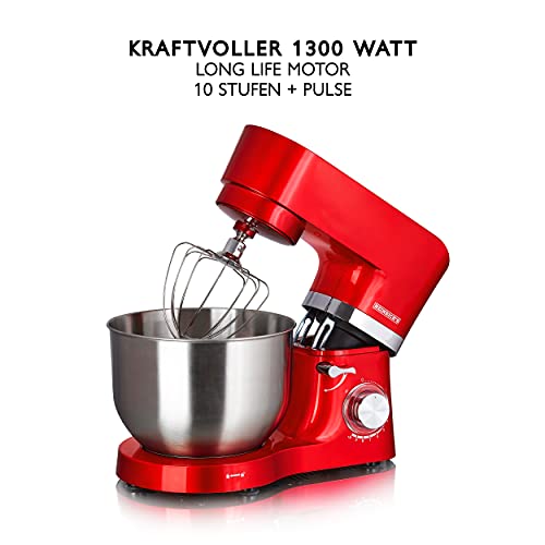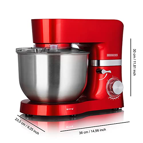 Heinrich´s - ماكينة تحضير الطعام والعجن بقدرة 1300 وات من هاينركس، لخفق العجين بوعاء من الستانلس ستيل وواقي من الرذاذ بـ 10 سرعات قابلة للتعديل ومنخفضة الضوضاء سعة كبيرة جدا 6.2 لتر، (لون احمر)