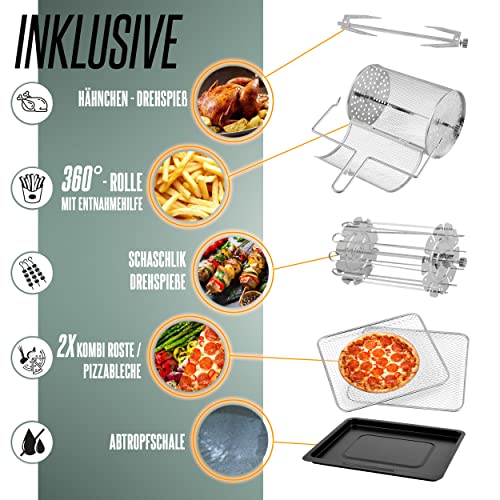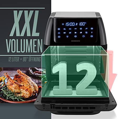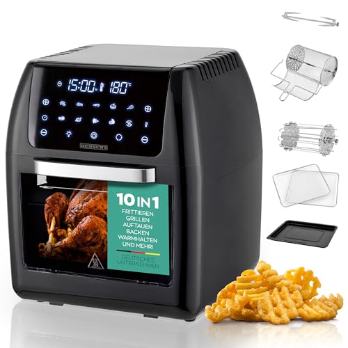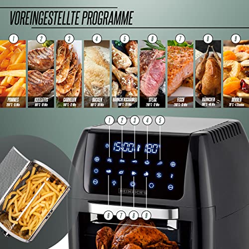 Heinrich´s - قلاية هوائية صغيرة مع شاشة LED ديجيتال تعمل باللمس و9 برامج بقدرة 1800 وات من هاينريش، 1800.0 واط، أسود