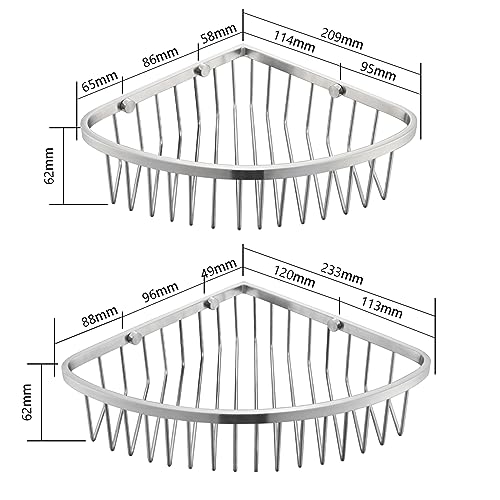 Heixutas - سلة دش زاوية من هيكسوتاس، بتصميم بسيط، باللون الفضي، مصنوعة من الستانلس ستيل، مع تصميم درينيج مميز، مجموعة من قطعتين