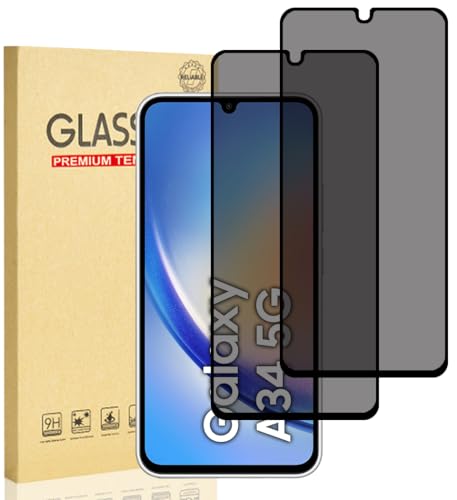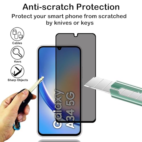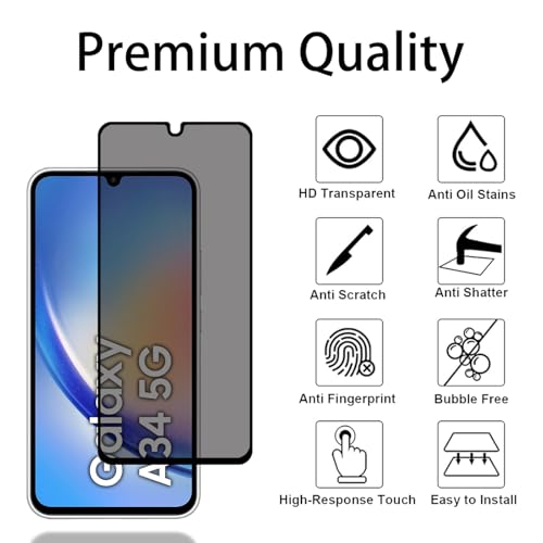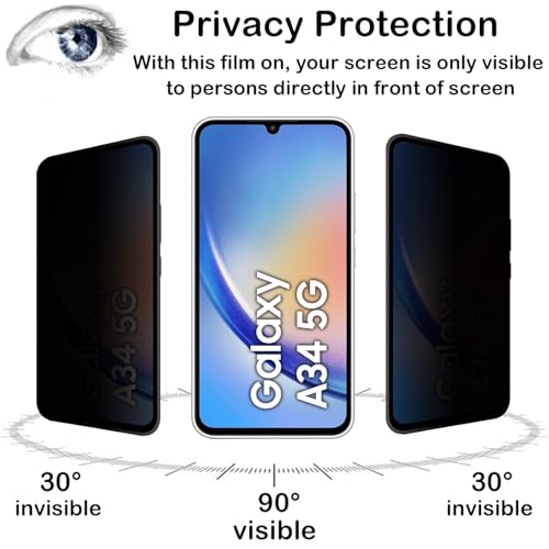 Hejkaoe - شاشة حماية للخصوصية من الزجاج المقوى مضادة للتجسس لسامسونج جالاكسي A34 شبكة الجيل الخامس 5G، شاشة بصلابة 9 ومضادة للخدش سهلة التركيب تغطية كاملة 3D مضادة للكسر خالية من الفقاعات من هيجكاوي، 2 قطعة