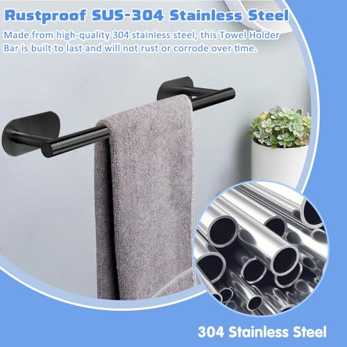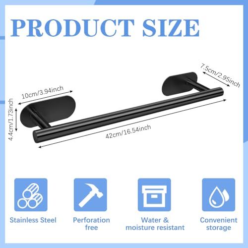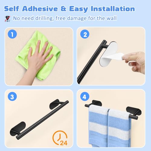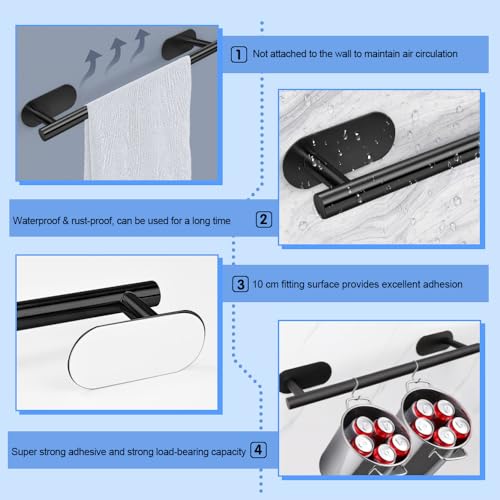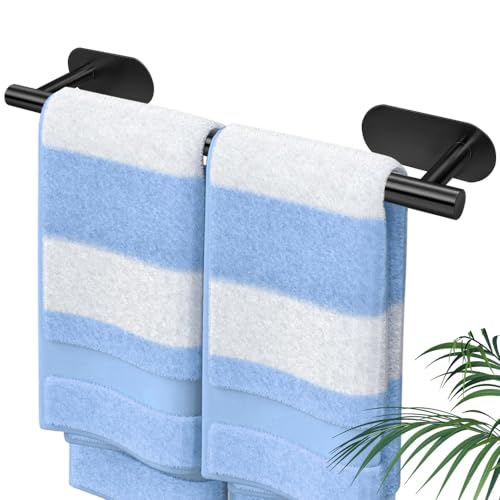 HEKOBAG - حامل مناشف ذاتي اللصق من هيكوباج، حامل مناشف 40 سم من الستانلس ستيل SUS 304، حامل مناشف يثبت على الحائط، حامل مناشف للحمام والمطبخ - سهل التركيب (اسود)