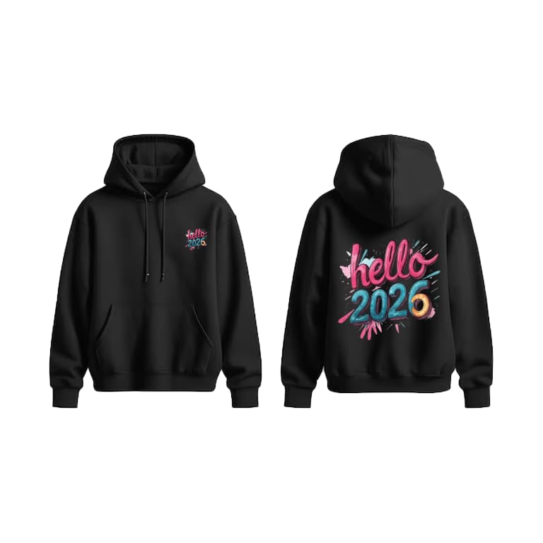 Generic - هودي هالو 2026، اسود، طباعة امامية وخلفية ورباط، جيب الكنغر مقاس (L)