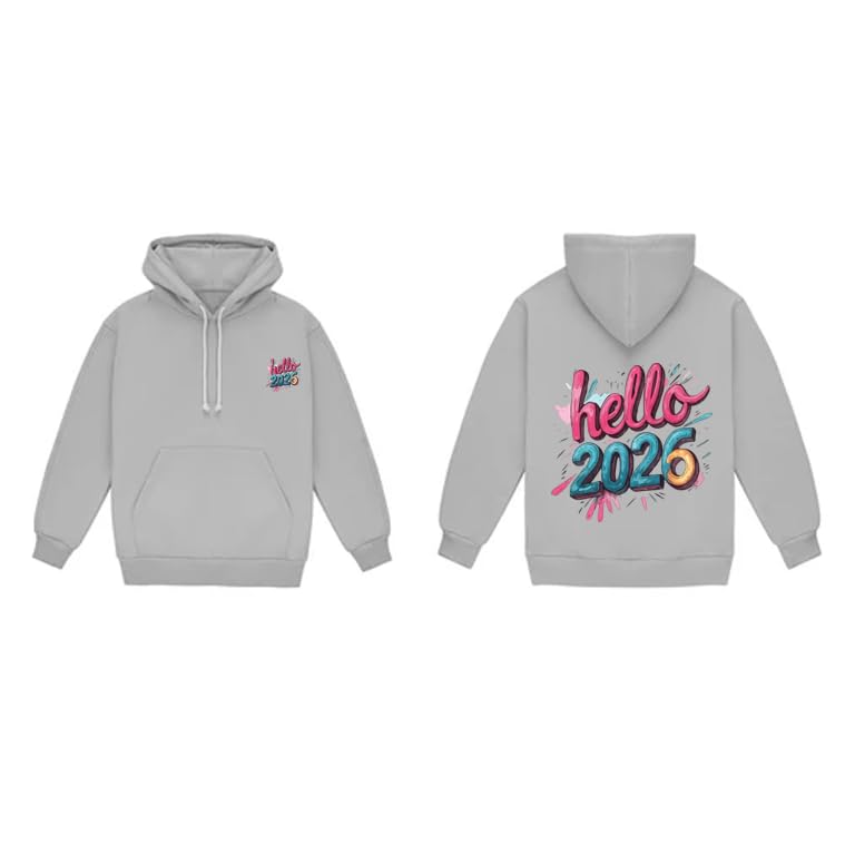 Generic - سويت شيرت بغطاء للرأس مطبوع عليه Hello 2026، رمادي، طباعة امامية وخلفية مع جيب مقاس (3-6 سنوات)