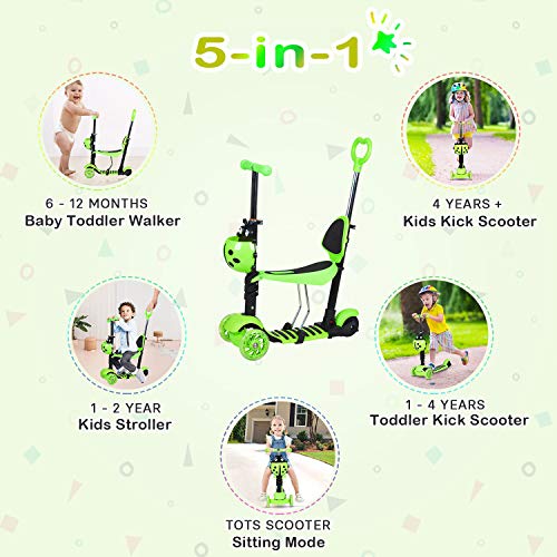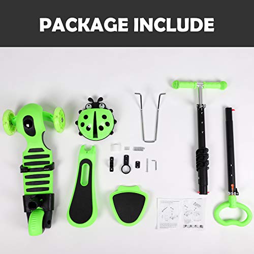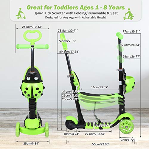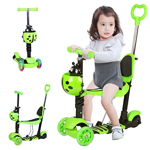 - 【سكوتر أطفال 5 في 1】معتمد من EN71، مع مقبض دفع ومقعد قابل للإزالة، إنها عربة دمى ومشاية أطفال ودراجة توازن لعمر 1-3 سنوات. بعد إزالة المقعد والمقود سيكون سكوتر ركل للأطفال بعمر 3-8 سنوات. توفر سلة الدعسوقة مساحة تخزين. أفضل خيار لأطفالك!