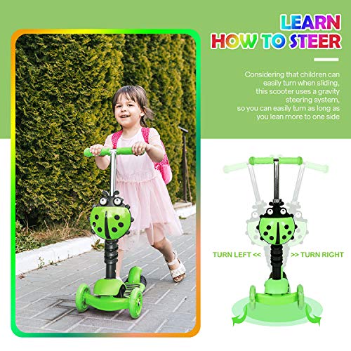 - 【عجلات مضيئة LED】مع عجلات من البولي يوريثان مع محمل ABEC-7، يتميز السكوتر ذو العجلات الثلاث بأداء كتم الصوت والتآكل ومضاد للصدمات، العجلات لها عجلات فلاش LED رائعة، بدون بطارية، وسوف يضيء ضوءًا ملونًا ساطعًا من خلال الانزلاق على سرعة معينة. يجعل السكوتر أكثر وضوحًا في الظلام. يمكن أن تجلب متعة ومتعة لا نهاية لها لطفولة أطفالك!