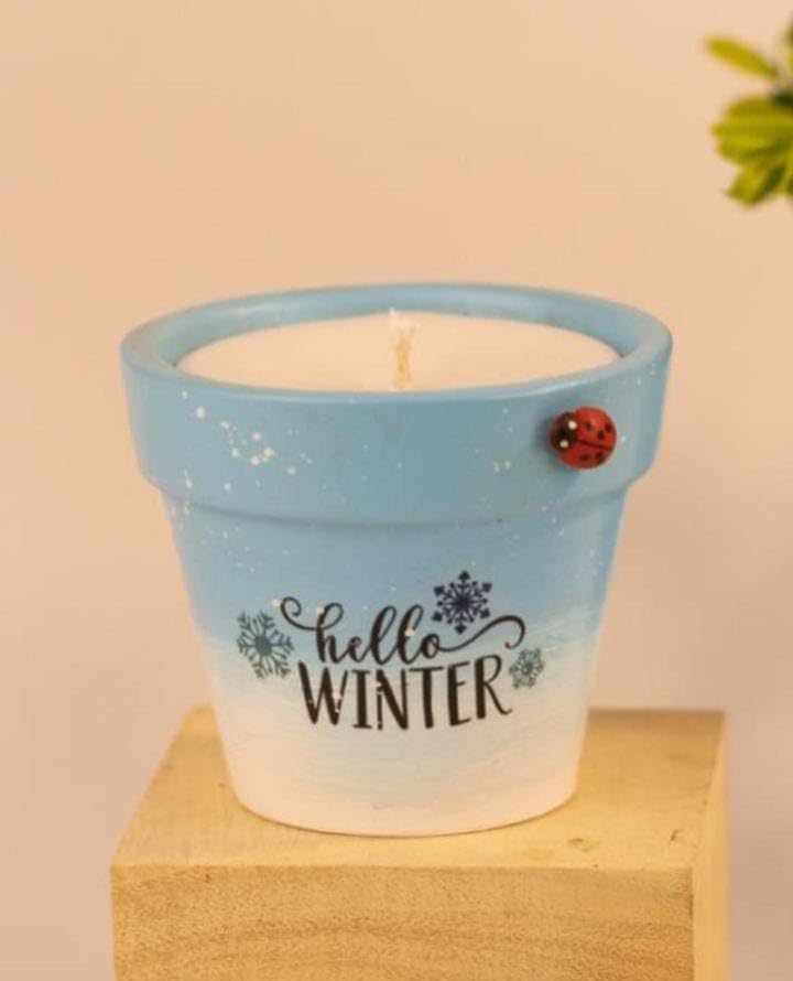 - مزايا التصميم: وعاء سيراميك ساحر بلون أزرق فاتح متدرج مع نص "Hello Winter" وزخارف ندفة الثلج وقطعة مميزة رائعة على شكل دعسوقة.