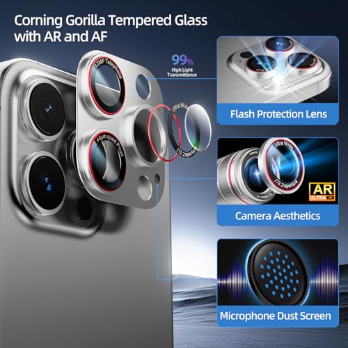 - 【تمتع بتصوير أوضح】: يستخدم واقي حماية كاميرا آيفون 15 برو من مجموعتنا زجاجًا مضادًا للانعكاس فائقًا مع نسبة نقل ضوء تصل إلى 99% واستنساخ ألوان عالي جدًا. لتتمكن من التقاط صور عالية الجودة وتسجيل مقاطع فيديو رائعة بسهولة. حتى عند التصوير باستخدام الفلاش ليلًا، لن يكون هناك وهج. مع الثقة التامة بأداء كاميرا آيفون 16 برو ماكس خاصتك دون تأثير. مما يتيح لك الاستمتاع بصور أوضح وأكثر حيوية في كل مرة.
