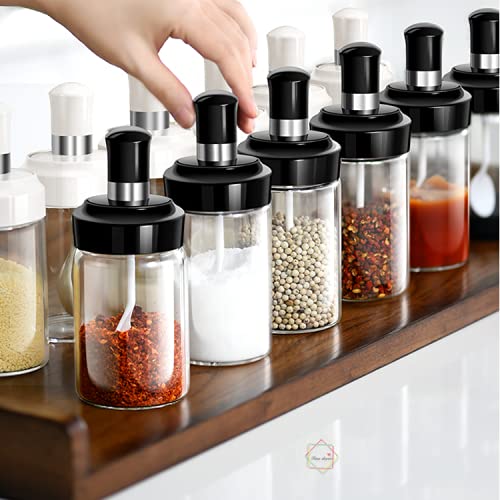 - <li>حافظ على التوابل طازجة بجودة فاخرة، زجاج من الدرجة التجارية: برطمانات زجاجية للتوابل عالية الجودة وشديدة التحمل. البرطمان الزجاج آمن للوضع في غسالة الأطباق. افتح الغطاء المرفق بالمعلقة واستخرج التوابل بسهولة. يمكن استخدامه كموزع للسمن وموزع للعسل وموزع للزيت.