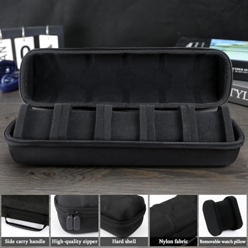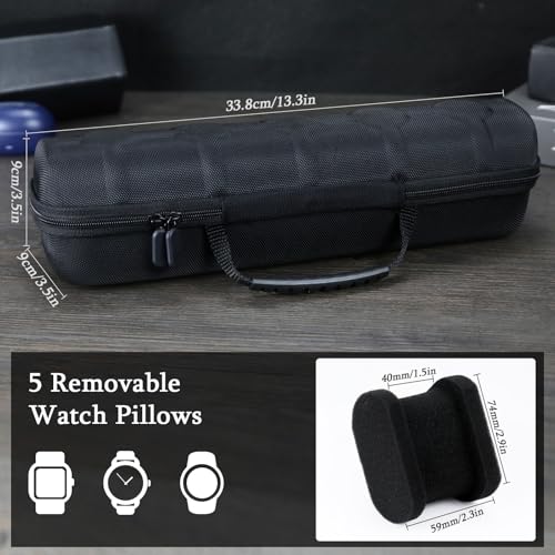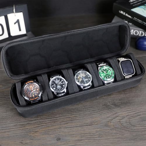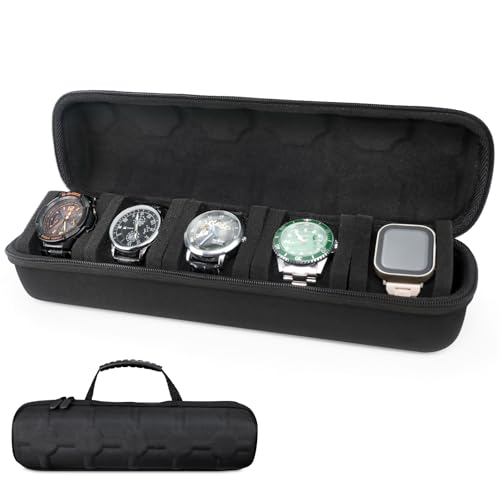 HELMDY - حافظة ساعات للسفر بـ5 فتحات للرجال والنساء من هيلمدي، علبة تنظيم ساعات مع مقبض حمل، شنطة تخزين ساعات محمولة تناسب ساعات اليد والساعات الذكية