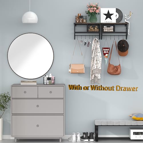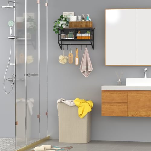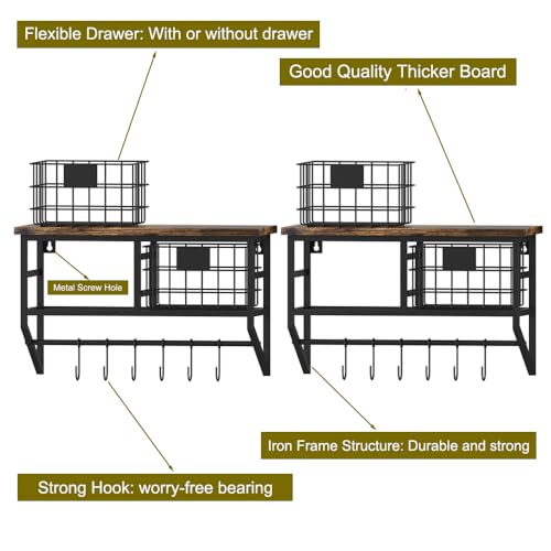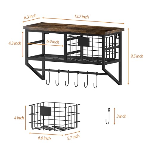 - 【المقاس】 حجم رف الحائط الريفي: 16 انش طول × 6.3 انش عرض × 10 انش ارتفاع؛ كل سلة تخزين: 6.5 انش طول × 5.7 انش عرض × 4 انش ارتفاع